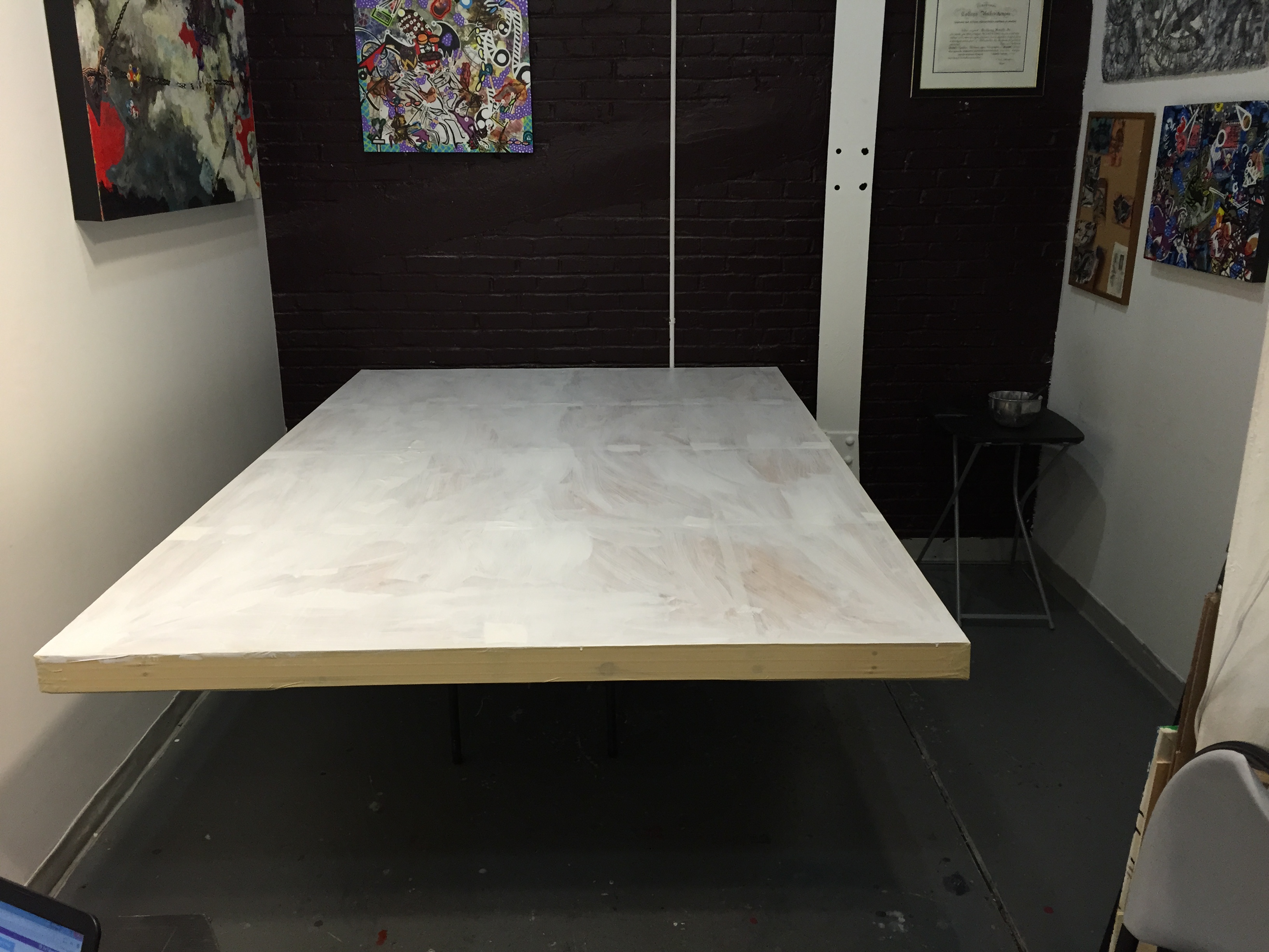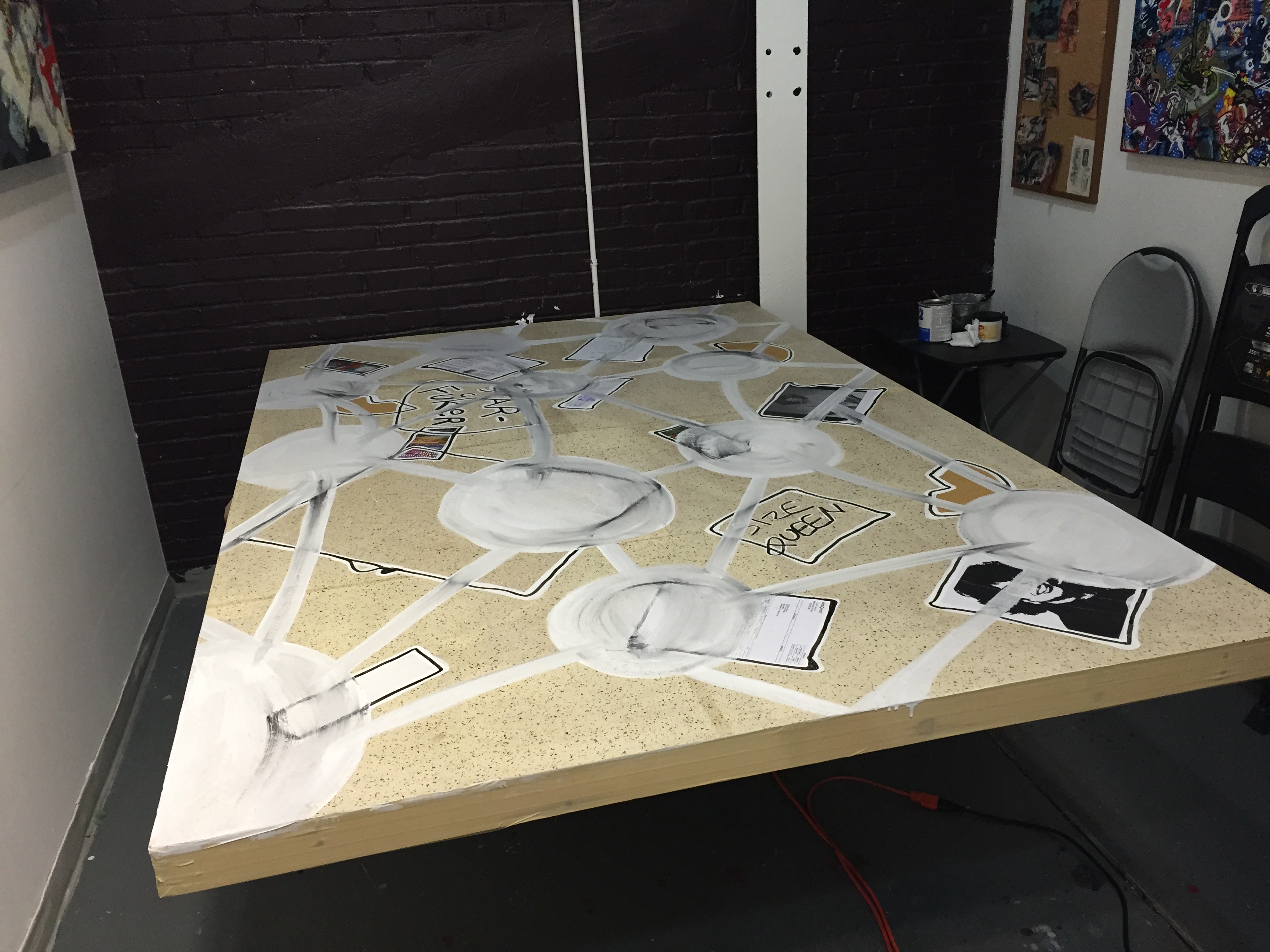 Although this monster is formidable I’ve at least figured out how I’m going to attack it, which is a positive step because I have 2 more works this size I will need to do to complete the set of works. On another note I’m two thirds through the new Ta-Nehisi Coates book “Between the World and Me” and its excellent and infuriating simultaneously, mostly because of its bleakness – which is necessary but still depressing. Being solution minded as I am I can’t help but think there is must be some wand that can be waved to solve structural racism in America, but I take it from the book that the very problem of race in America is that myth made race in the first place, and fantasy fuels its perpetuation. Anyway I’ll finish it soon and deliver the elegant response my friend Melvin Rogers has intimidated me into soon. Until then here are some process shots of Pilot #5 to give you an idea of how giant the piece is.