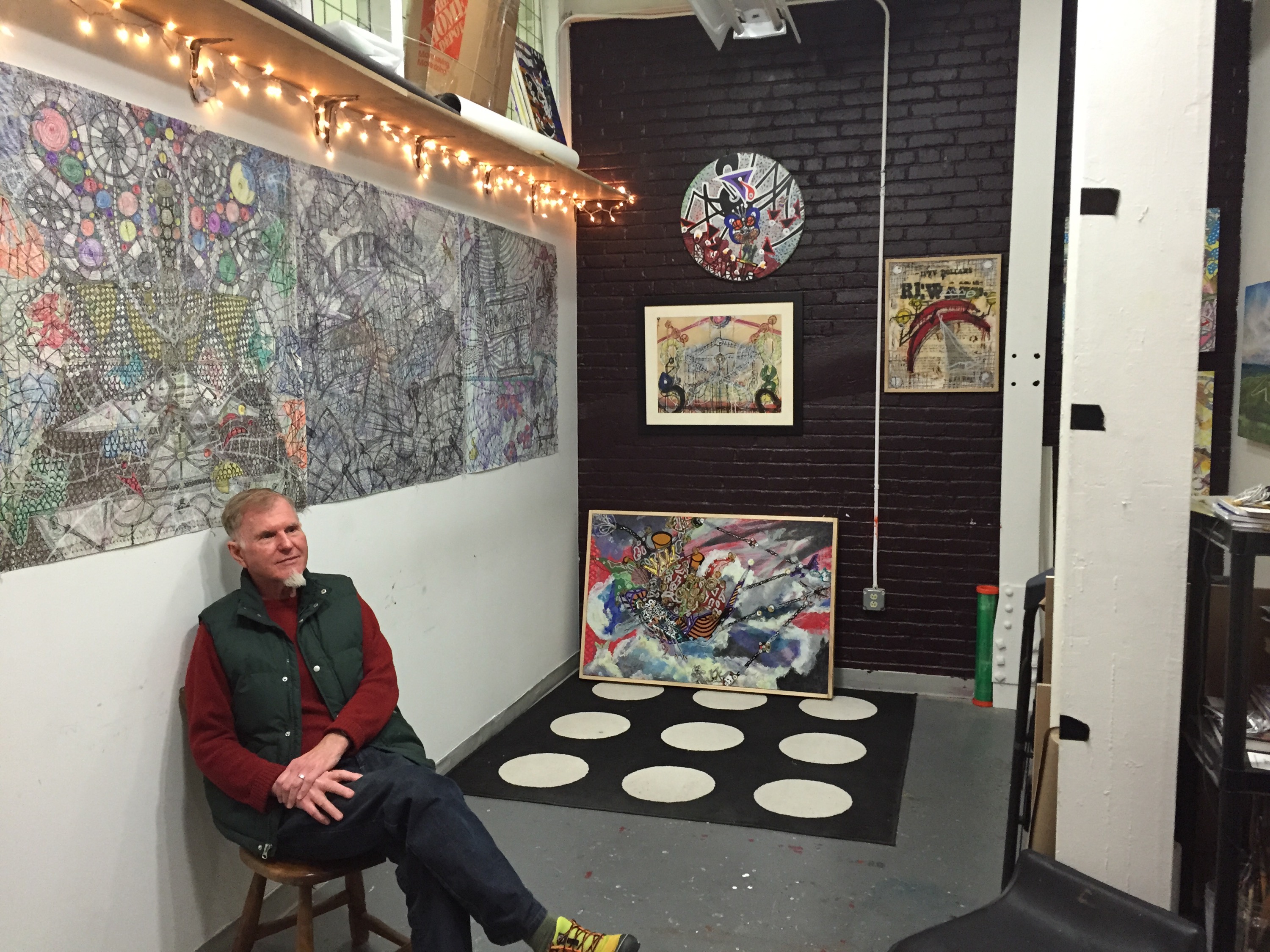 Later in the evening I shared or rather commiserated with a graphic designer about the difficulties of being a successful artist. I connected again with my good friend the gallerist and curator Marian Silliman, and had a nice whiskey with my studio mate Deb Slatha. All in all a very nice evening. Here are a couple images of my studio from last Friday. I received some works back from my shows at the Mid-Atlantic 2016 show at University of Mary Washington, and my two person show with Melissa Perhamus at Lebanon Picture Frame Gallery.