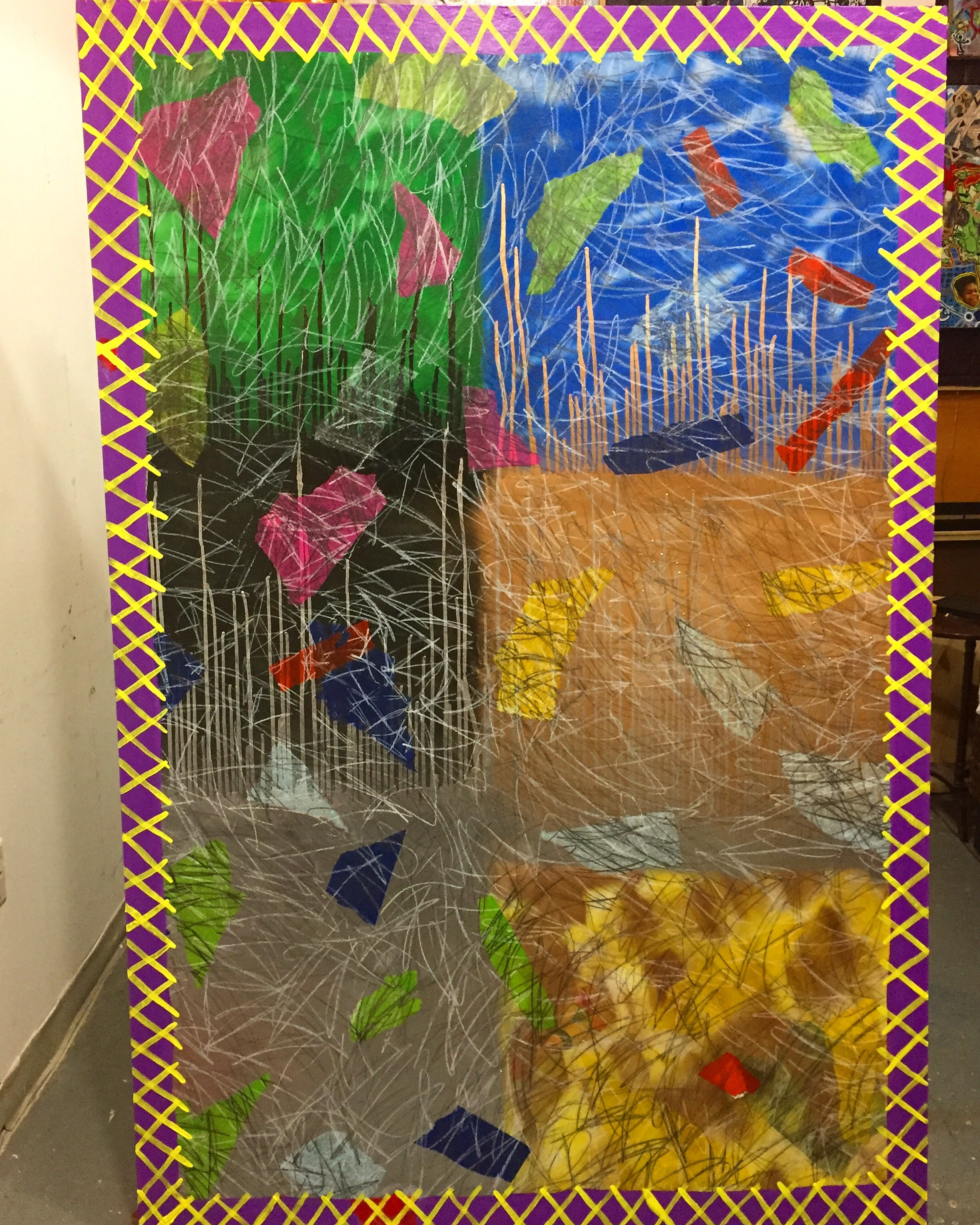 I came to a similar point in my current painting Pilot 6. For whatever reason after I create these largely randomized surfaces I can’t just let the painting exist on its own terms. I become so fixated on completing a vision that I can’t see anything short of that vision as valid. This compulsiveness can be really draining, taking energy out of a piece, something I’d like to address in future works where I stop myself a little sooner. Here’s where Pilot 6 was last week when there was a secret painting emerging: