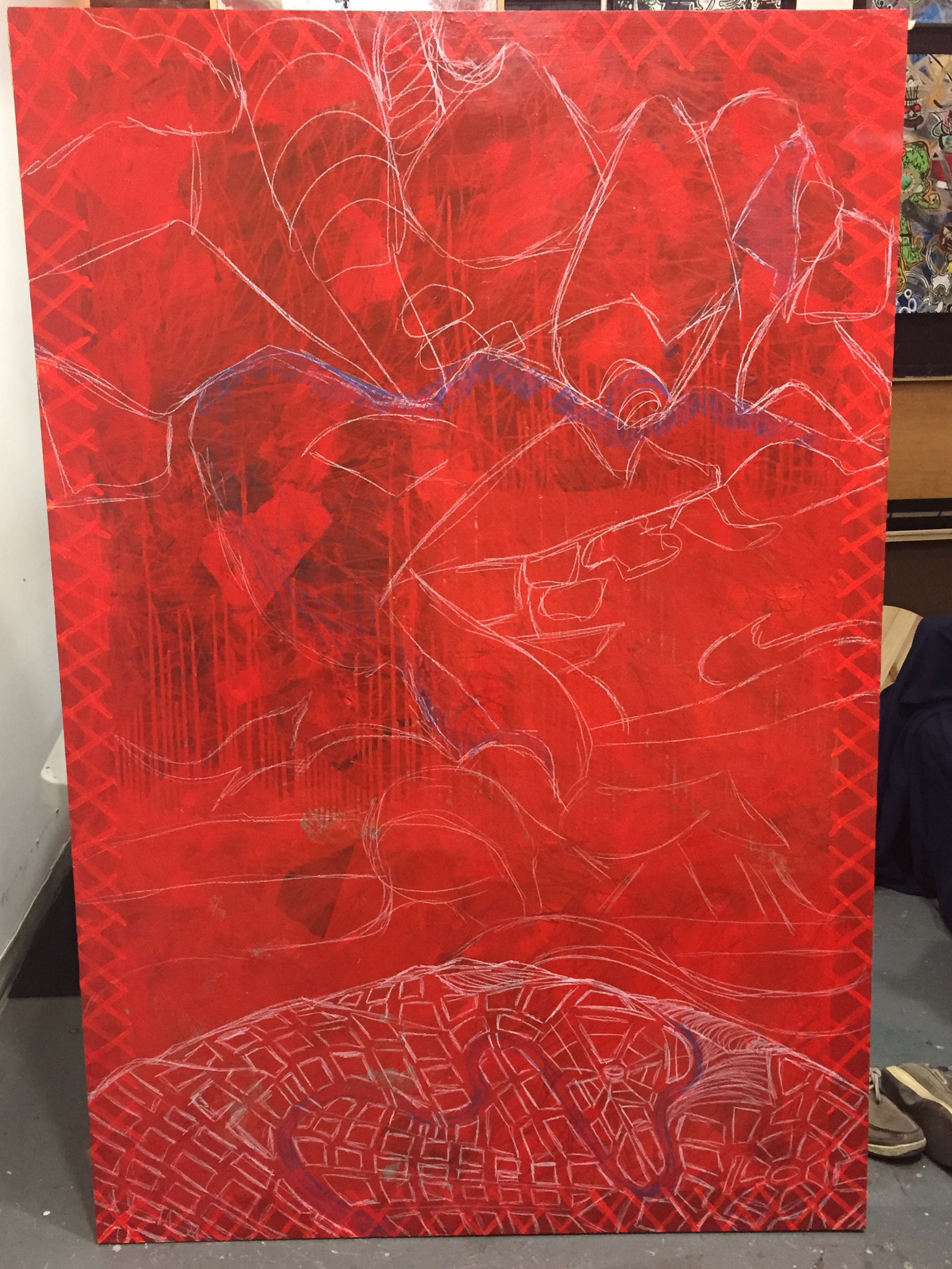 There are usually drawings that give me some direction, however the drawings don’t always translate to paint, and I can run into some trouble getting the one materials to behave like the other. This moment of the painting is terrifying to me and is usually where the painting fails if it does so at all. Not having the confidence to push through these initial gestures have in the past meant the difference between a series of 4 or a series of 8 or 10 pieces.