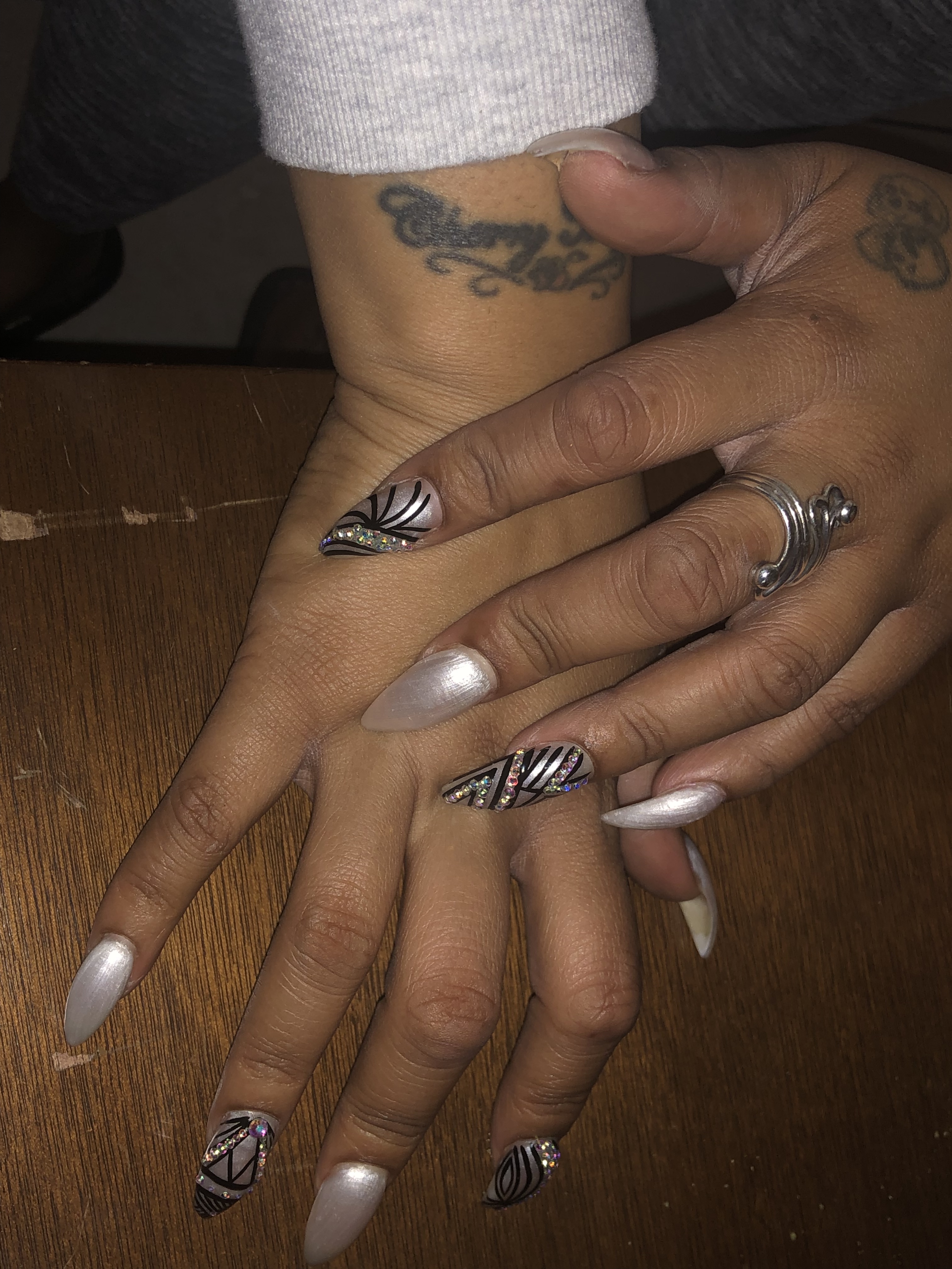 As the night wore on I found myself obsessing over her nails. I love when black girls get their nails done. Mine are always bitten down to the bone and dirty, usually from painting, Lissy’s were killer, literally; like don’t get to close or you might get cut killer; like, you don’t have to search for the murder weapon killer; like Kruger only sharper and with sparkles killer. I took a few shots of those nails that night with the intention to one day do a painting series of them. I don’t think Lissy would mind me sharing her lovely finger knives here.