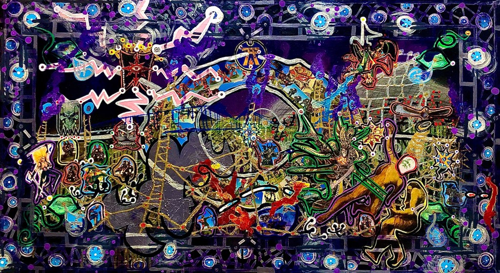 These Gnostic Confession pieces are an attempt on my part to refine a super dense painting method that I’ve used for years. It’s my hope that by adding some iconographic effects (colors, themes, subject matter, compositional design) employed in Christian Orthodox painting, that I can add an increased level of spectacle to my already carnivalesque technique. My efforts to date are not without risks since it’s easy to make a dogs-breakfast when adding more and more stuff to a painting. I have to say I’ve always danced on this edge of too much stuff, in fact usually I drive right off the cliff of too much stuff. It is for this reason that I’ve tried to incorporate other painting idioms to my repertoire which are more about balance, such as the other major series I worked on this last week, “Malik’s B-Boy Blues”.