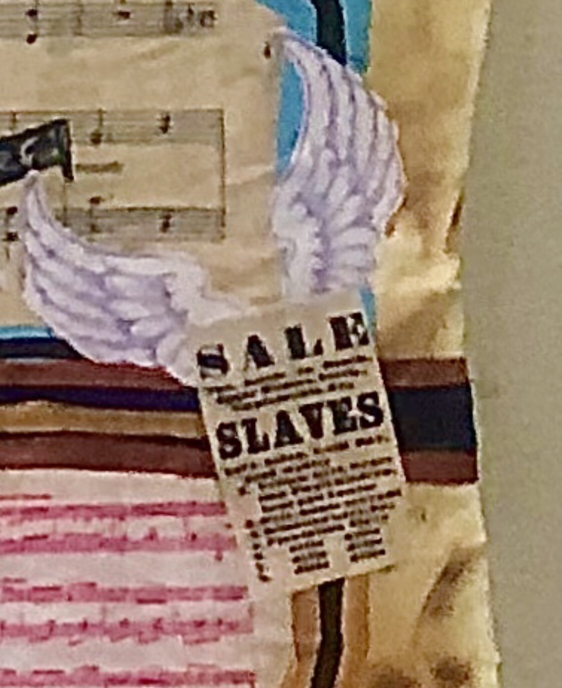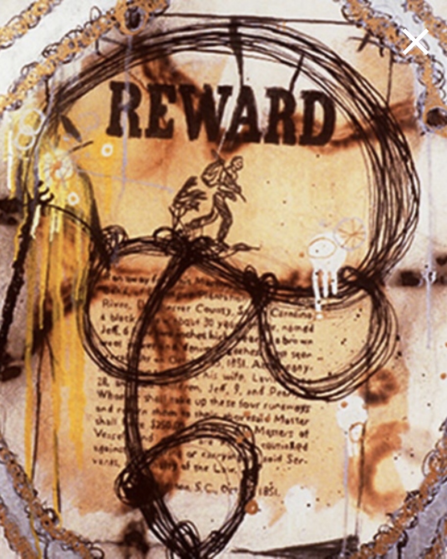 Back in 2001 right after I left grad school, I became interested in slave posters. I did this series called “Wanted” made from rubbings I made on coffee-stained Rives de Lin paper and mounted on Masonite boards. The works were a great success for me and even though I made them nearly 20 years ago I still am inspired by what I did in that little 8-part series. I really identify with these posters, often seeing myself in the descriptions of enslaved blacks. In the current series I’m working on I bring this personal identification to a new level by transforming these posters into dancing angels. I mentioned thinking about how to create these figures a few weeks ago and now that I have an idea of how to draw and paint these slave-poster-angels I think they’re going to become a new motif for me.
