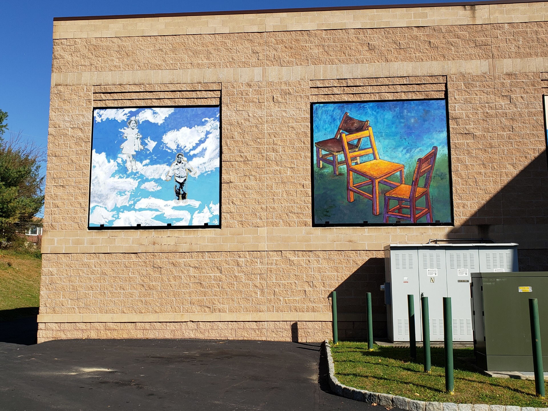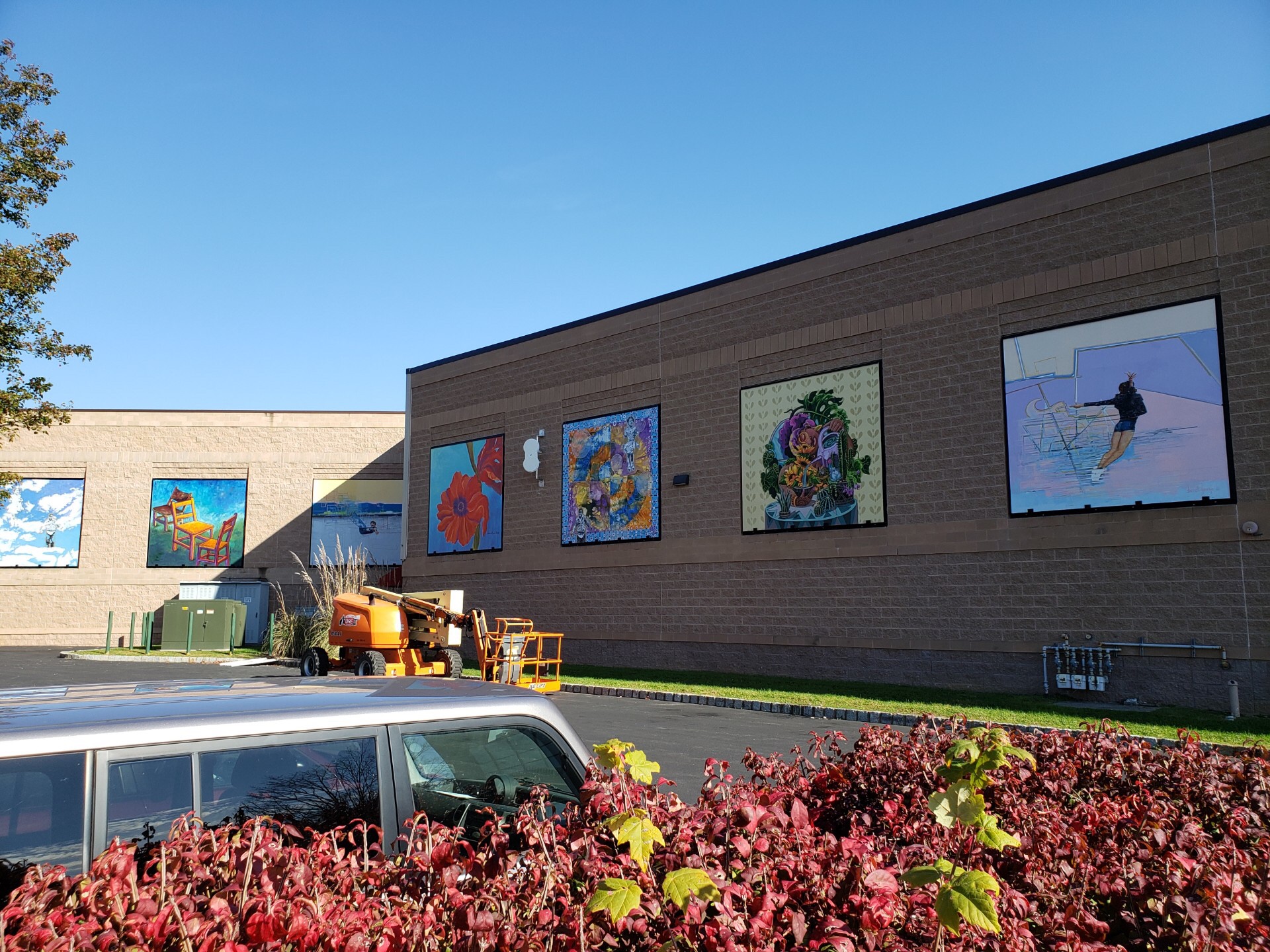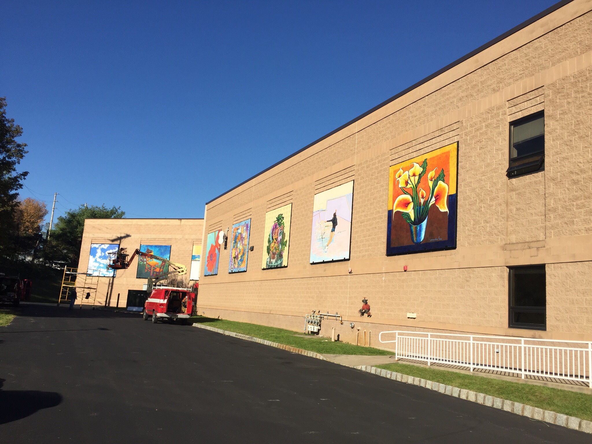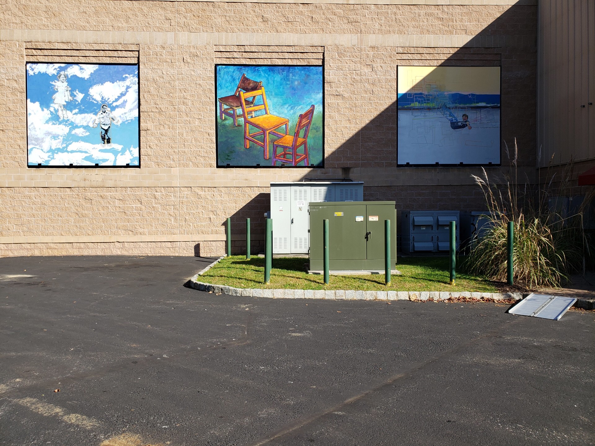 We finally got some installation shots of the murals that some colleagues and I did at Hindle Power this last August. thanks again to Bill Hindle and Darrell George for the opportunity to work with this great group of artists. The pieces look great. If your driving down I-78 look towards downtown Easton, you can see the pieces from the interstate. Here’s the installation shots