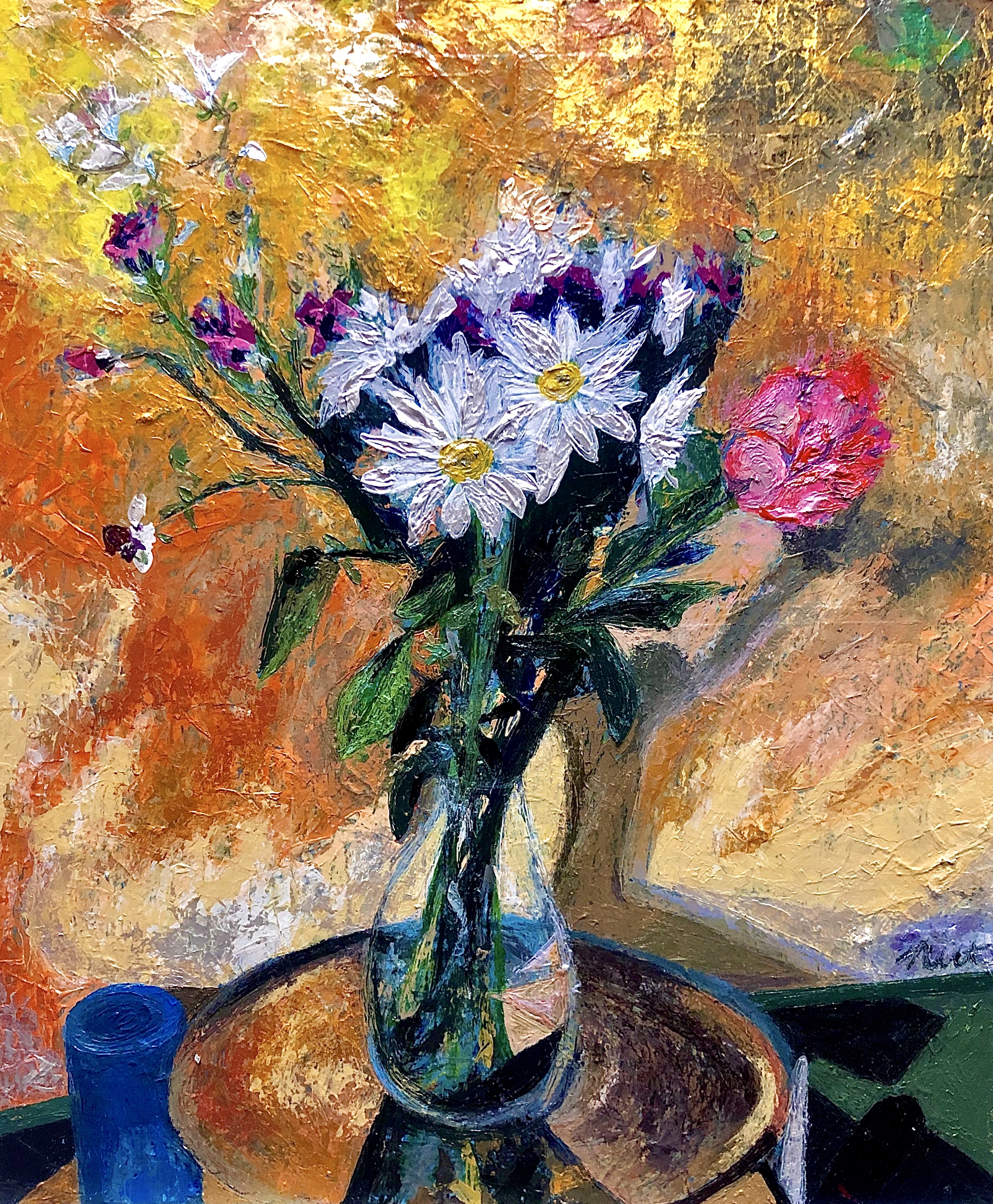 As the pandemic worsened by the late spring and social justice protests starting up all over the country due to police shootings and other raciest violence in Georgia, Kentucky and in Kenosha Wisconsin my thoughts went to how I could address both issues in my art. I completed “Kenny’s Carpetbaggers Lament” as a response to the Kenosha protests and began work on “Adela’s Bouquet” to give me a respite from the heavy political subject matter of my BLM response works.