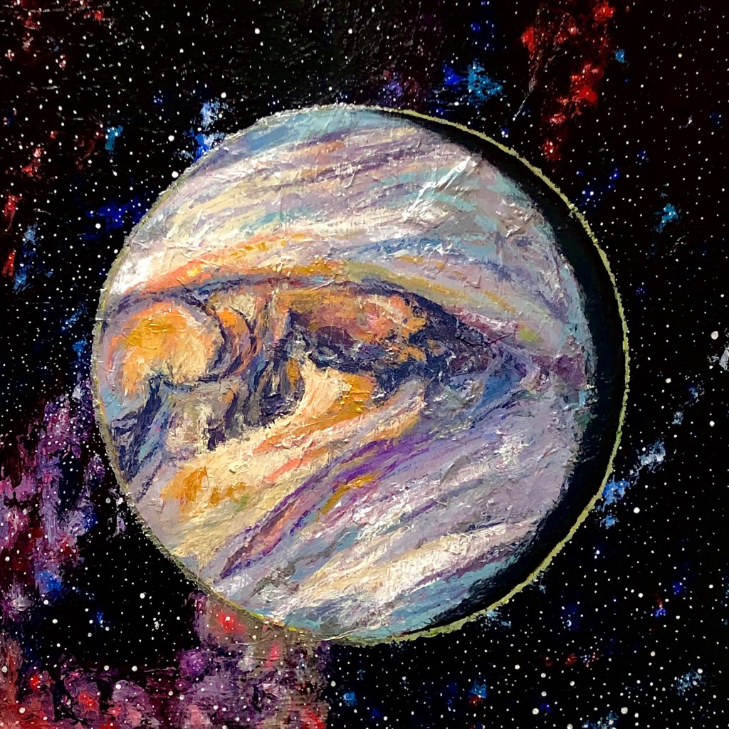 As I said before the year started out with me finishing up the “Friends are My Solar System” series. That long unexpected batch of paintings were initially like an albatrosses around my neck because they were so unwieldy. The planets paintings eventually became my favorite pieces by the end of the series. Especially the final two works of Pluto and the Earth which I think were the best put together pieces of the set.