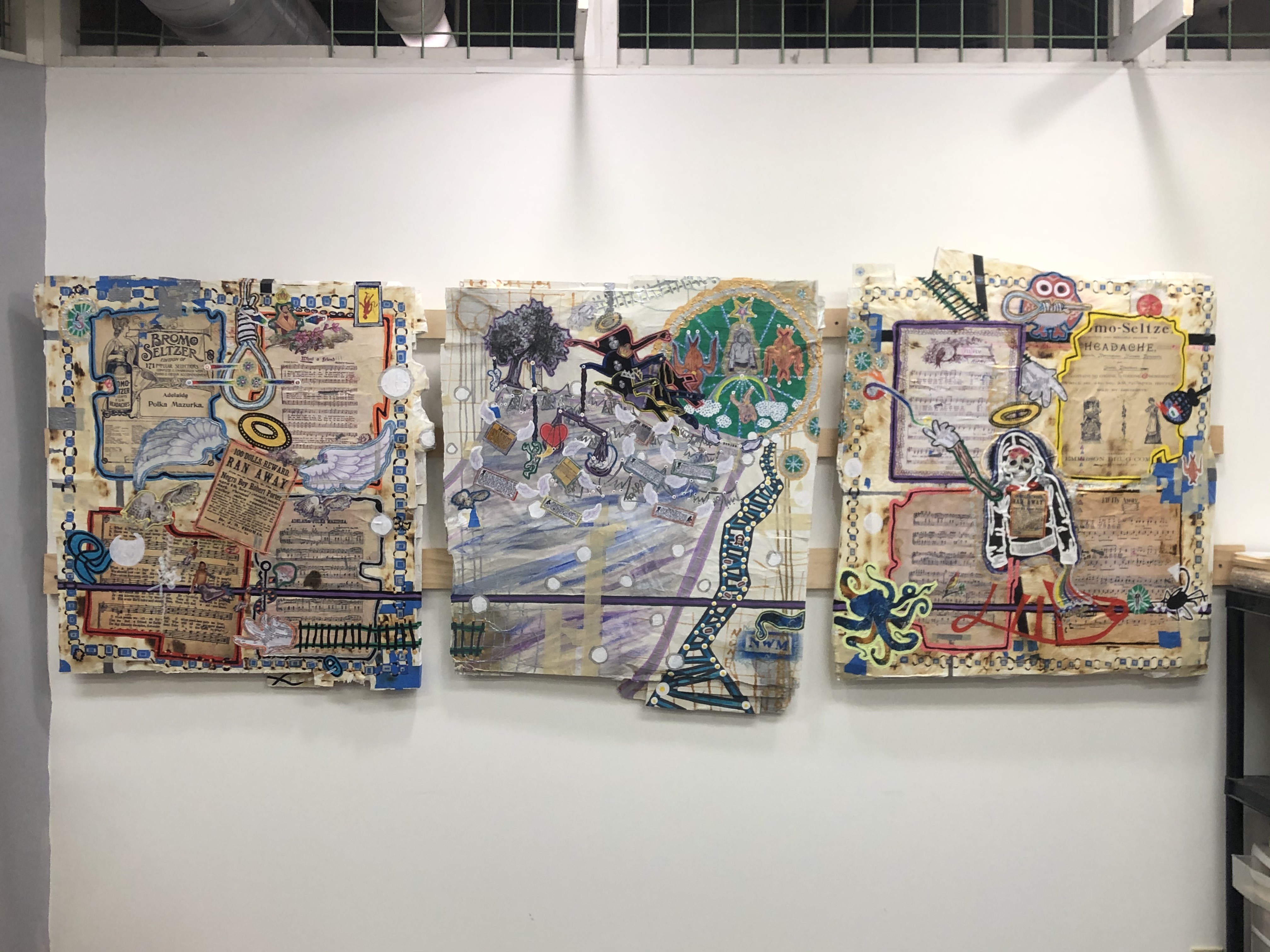 Though it’s expensive to me both practically and I suppose emotionally too, this more contemplative mode that this constant diet of social media and tech has put me in lately does make me feel like I’m making stronger work. I’m enjoying the process too. I’m finding that my time in my studio is in a way more efficient and I feel connected to a zeitgeist that helps with the social isolation that can hit artists. Here’s where all three projects are right now in my studio.