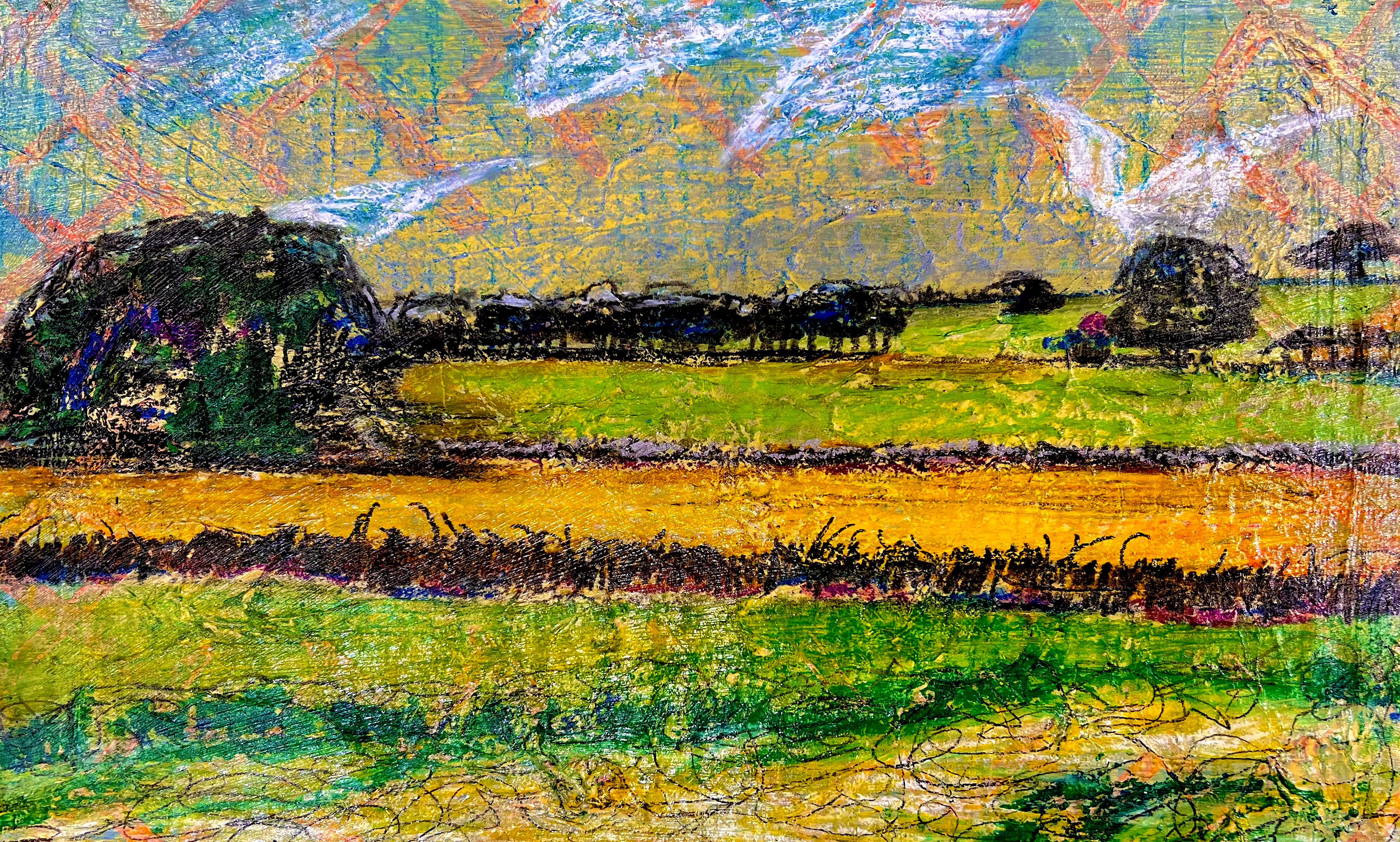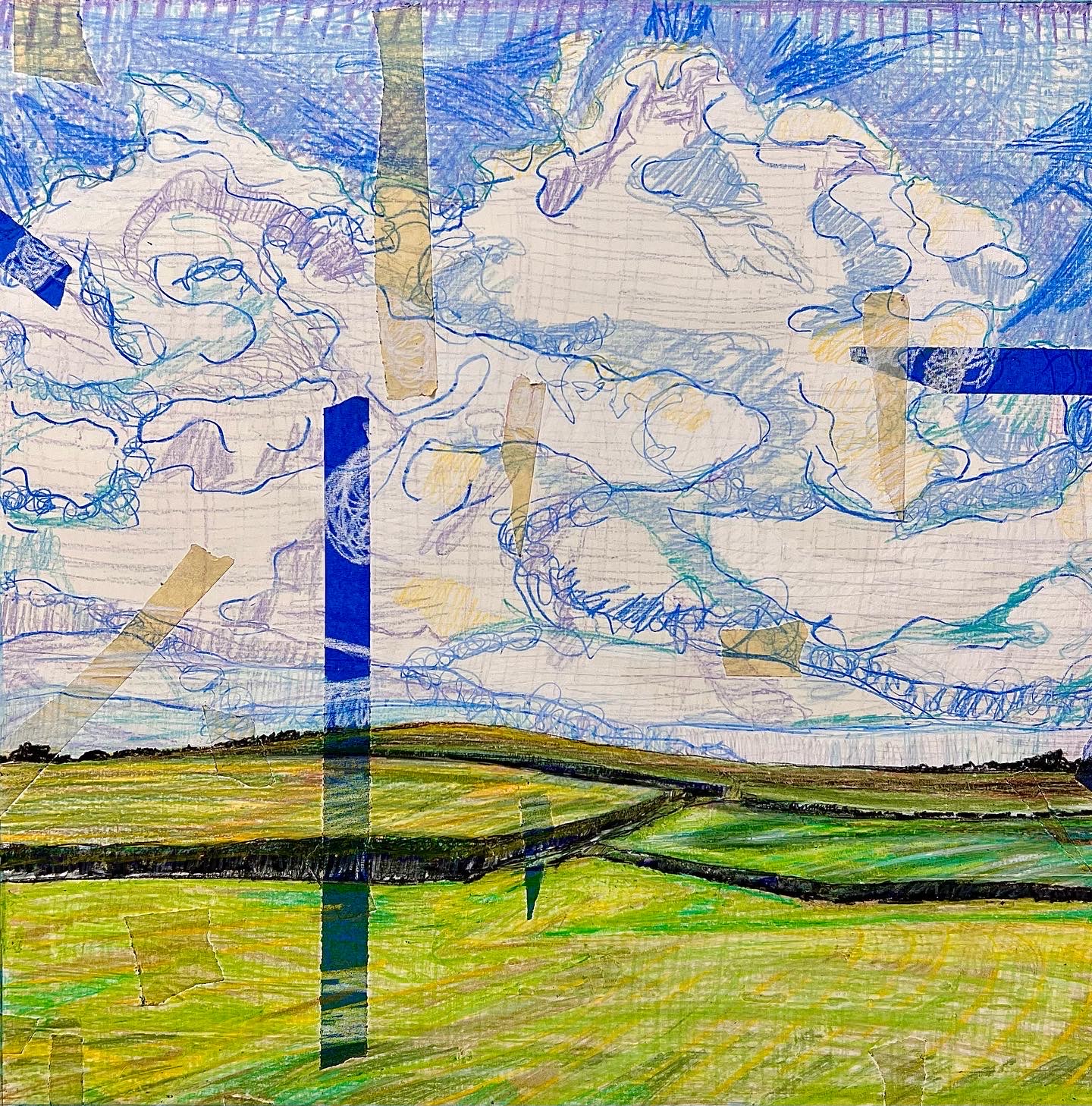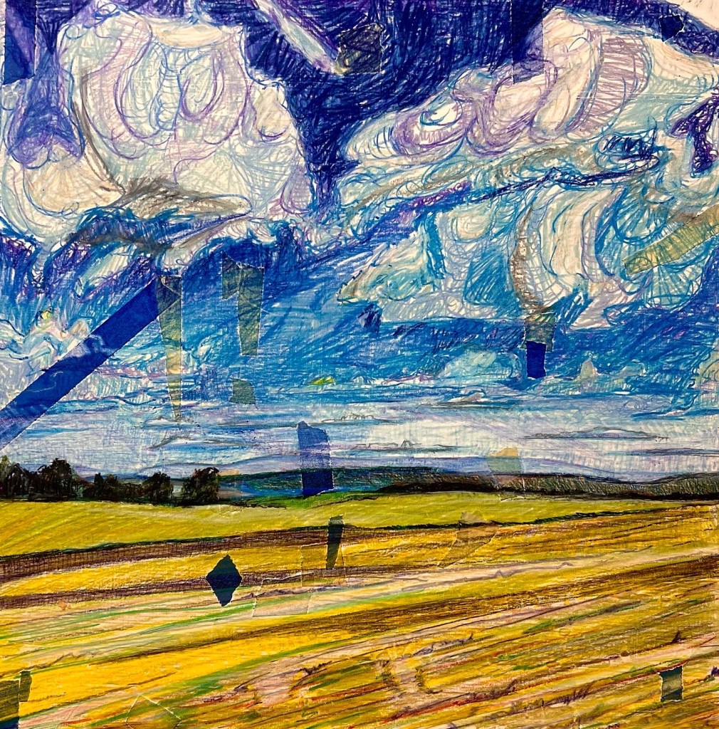 The big landscape works I’m gearing up for in June are my two 40 x 40-inch commission works for clients out in Wisconsin. I feel so lucky that I got this commission from Integrated Art Group out of Madison Wisconsin. They’ve been so good to me over the years and I’m so thankful for their continued support. The pieces they asked me to create are just past the secret painting phase in my process and are ready for the under-drawing step, which I plan on doing in early June. The clients would like the finished work by the end of June, which I think is a doable but tall order. Originally, they wanted the works in August. It’s kind of thrilling to be under the gun like this but also scary because the nervousness often leads to procrastination. Fortunately, the other side of my fee is on the other side of two completed works which is a great motivator. The whole experience makes me feel like an undergrad. What’s interesting about the two pieces compositionally for me is that they are essentially excuses to create dramatic sky paintings. I’ve in the past struggled or at least noticed that I have a predilection towards dramatic sky’s in my latest few works like in the “Sighting MLK” pieces for example. I many of my landscape I make sure that the pieces are at least half sky and half landscape. This division forces me to find something interesting and unique in the land portion of the paintings. With these commissioned works, which I’m calling “Big Sky Valley”, the pieces are like 70% sky. I make no real attempts to create a balanced work, which represents a big leap in confidence regarding the subject matter I represent.