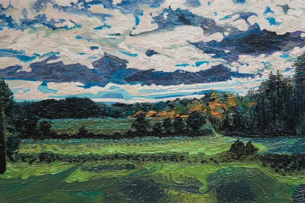 The piece above was inspired by the backyard landscape of Rachel Brubaker’s childhood home. To learn more about how this piece came to be, check out my video interview with Rachel! It provides valuable insight into the process of commissioning a landscape work and gives you an idea of what you can expect working together on your piece to be like.